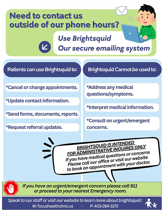 Need to contact us outside of our phone hours? Please use Brightsquid Secure Mail to email us.